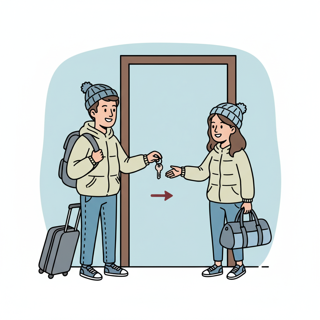 Mais le jour de l’arrivée ou du départ, je demande à ce que les locataires partagent le studio et qu’il soit mis à disposition pour garder les bagages du partant ou déposer les bagages de l’arrivant en partageant les clés, et les laisser dans le boîtier à clé en cas de sortie.