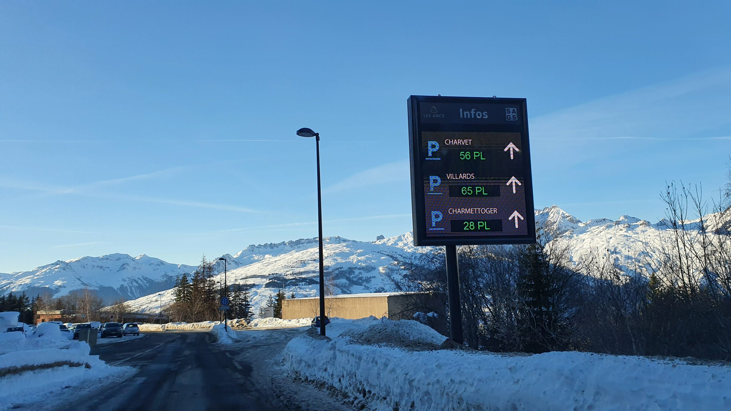 Parking extérieur du Charvet (payant): Réservation conseillée, surtout pendant les vacances scolaires en hiver ! En outre, une résidence a été construite sur ce parking, réduisant le nombre de places disponibles en 2025, et pour ne rien arranger, le parking couvert des Villards a été fermé. Consultez les tarifs et réservations sur le site https://www.lesarcs.com/parkings-arc-1800.html